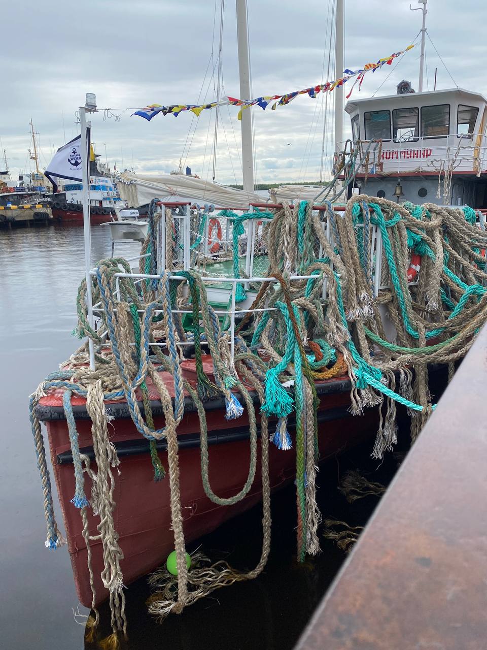 Девушки взяли иголки и сделали небольшие ковры. Их они повесили на канаты внутри трюма, добавив индустриальную звуковую инсталляцию. Они наполнили «Коммунар» звуками, которые были присущи судну во время его работы.