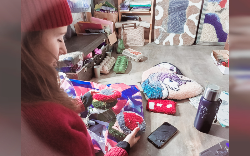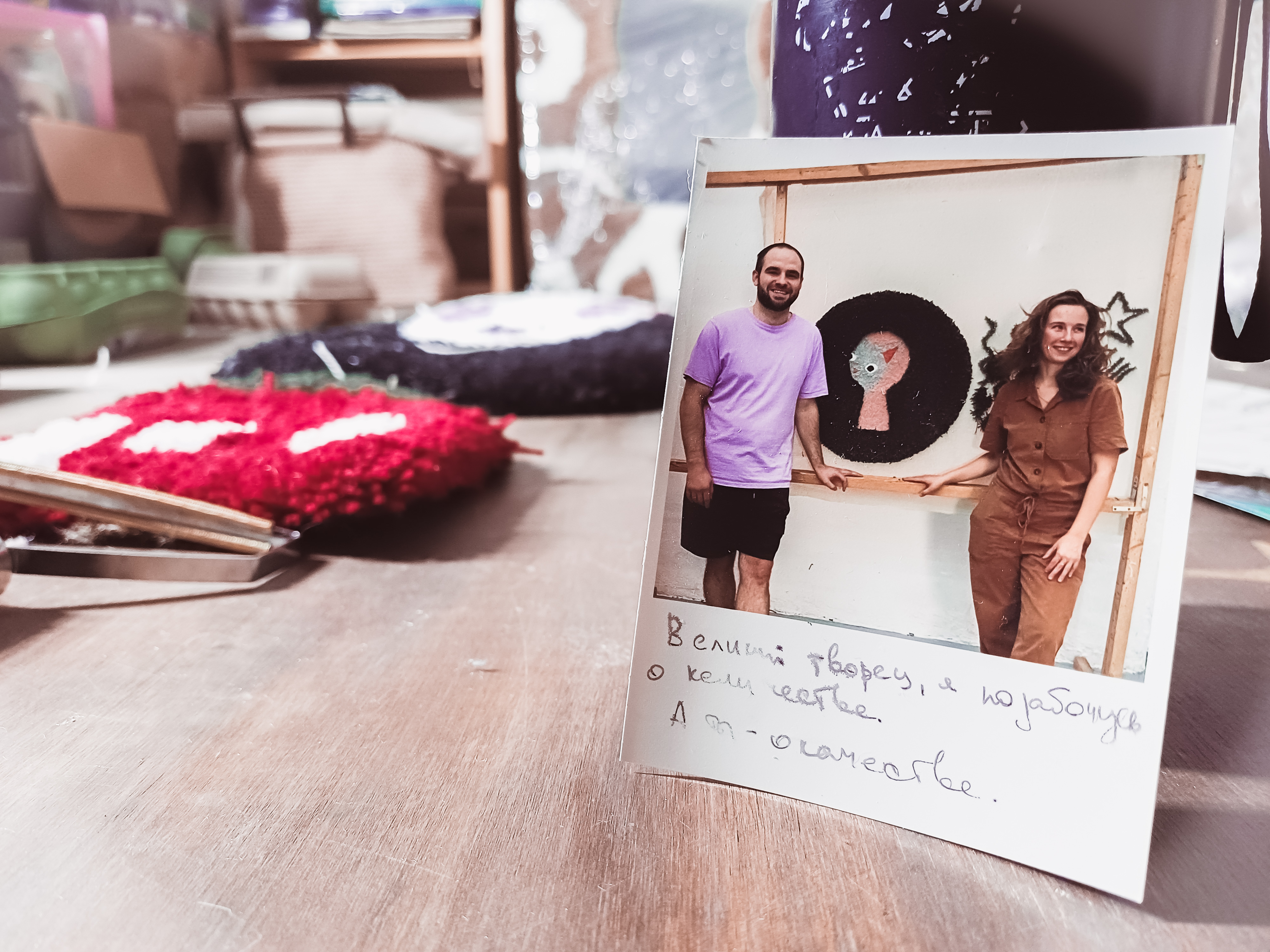 Летом 2025 года Наташа училась новому делу. Сначала она пробовала забивать ковры по урокам из интернета, но делала много ошибок. Процесс был долгим и мучительным. Помогли старшие коллеги из Санкт-Петербурга: художница училась в мастерской под наставлением более опытного мастера.