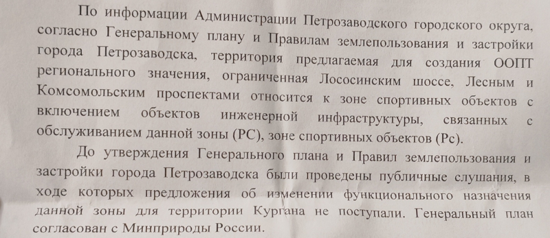 Материалы комплексного обследования защитники Кургана представили депутатам, и все вместе вновь обратились в Минприроды. А оттуда в ответ напомнили, со ссылкой на петрозаводскую администрацию, что на публичных слушаниях 2021 года предложений об изменении функционального назначения Кургана не поступало.