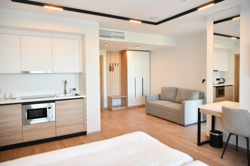 Это первый подобный объект в Карелии, сообщает правительство республики. Главным отличием апарт-отеля от других гостиниц является наличие полноценной кухни в каждом из номеров. Такие условия особенно комфортны для семейного отдыха, подойдут для всесезонного туризма и сравнимы с проживанием в благоустроенной квартире.