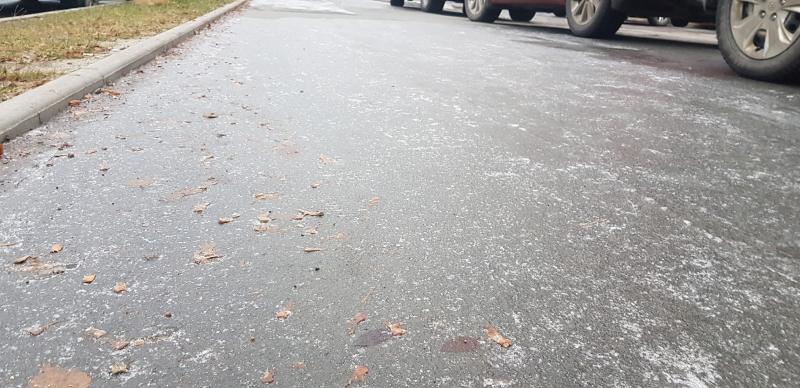 Сегодня, 17 ноября, утром в редакцию прислали несколько фото с разных районов города, где тротуары покрыты льдом.