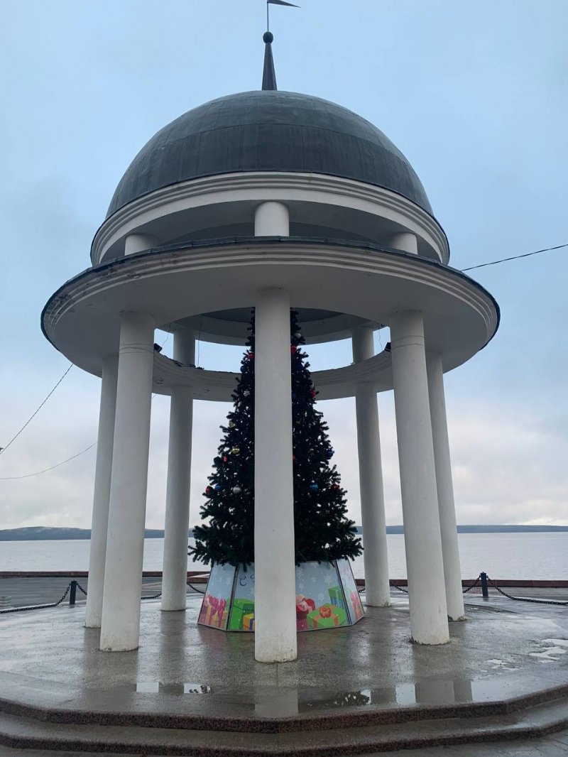 В редакцию «Фактора» читатель прислал фото новогодней елки, которую установили в ротонде на набережной Петрозаводска.