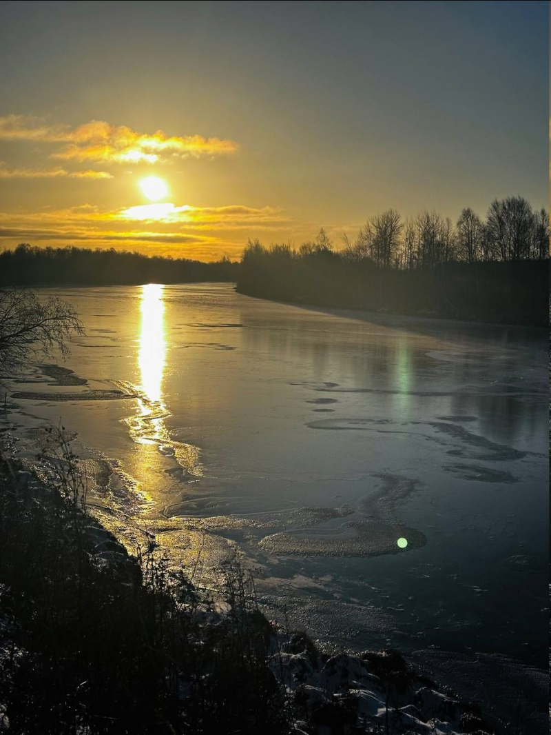 «И снова зима проигрывает этот бой…», — с грустью написал губернатор и выложил фото заката над рекой, где вода в декабре даже не покрылась льдом.