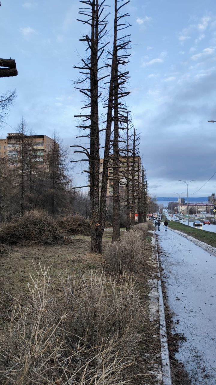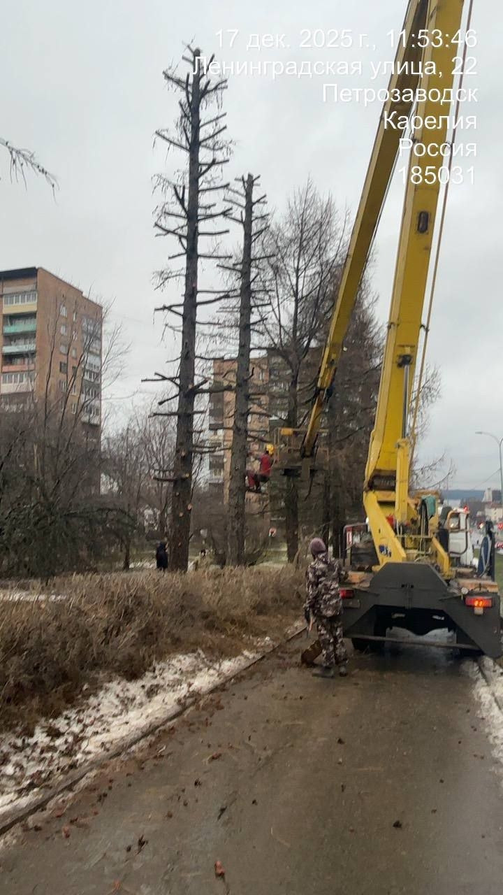 Увидев происходящее фотограф Игорь Подгорный на своей сторанице в соцсети написал: «Изуродовали одну из самых красивых аллей Петрозаводска, превратили красивейшие лиственницы на Ленинградской в уродливые обрубки».