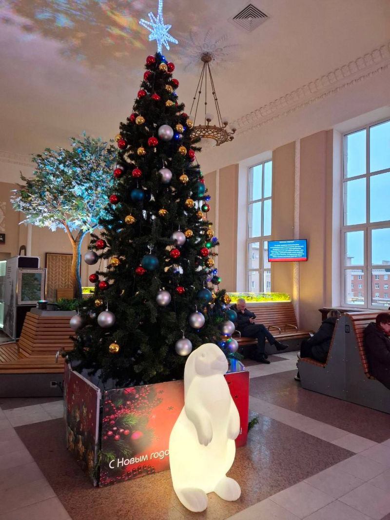 Как сообщили в телеграм-канале ОЖД, железнодорожный вокзал Петрозаводска засиял гирляндами, а в залах ожидания и на площади у вокзала (со стороны перрона) установили нарядные елки и светящиеся фигуры, которые создают волшебную атмосферу.