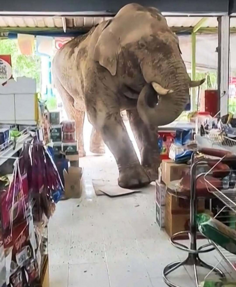 Молодого слона по имени Плай Бианг Лек (в Таиланде у всех слонов есть имена, даже у диких) жители поселка в Кхао Яе видели регулярно выходящим из заповедника на поиски пищи. Несколько лет он проходил мимо поселкового магазина и никогда им не интересовался. Но 2 июня он свернул с обычного маршрута и вошел в магазин, передняя часть которого представляет собой высокий навес без дверей.
