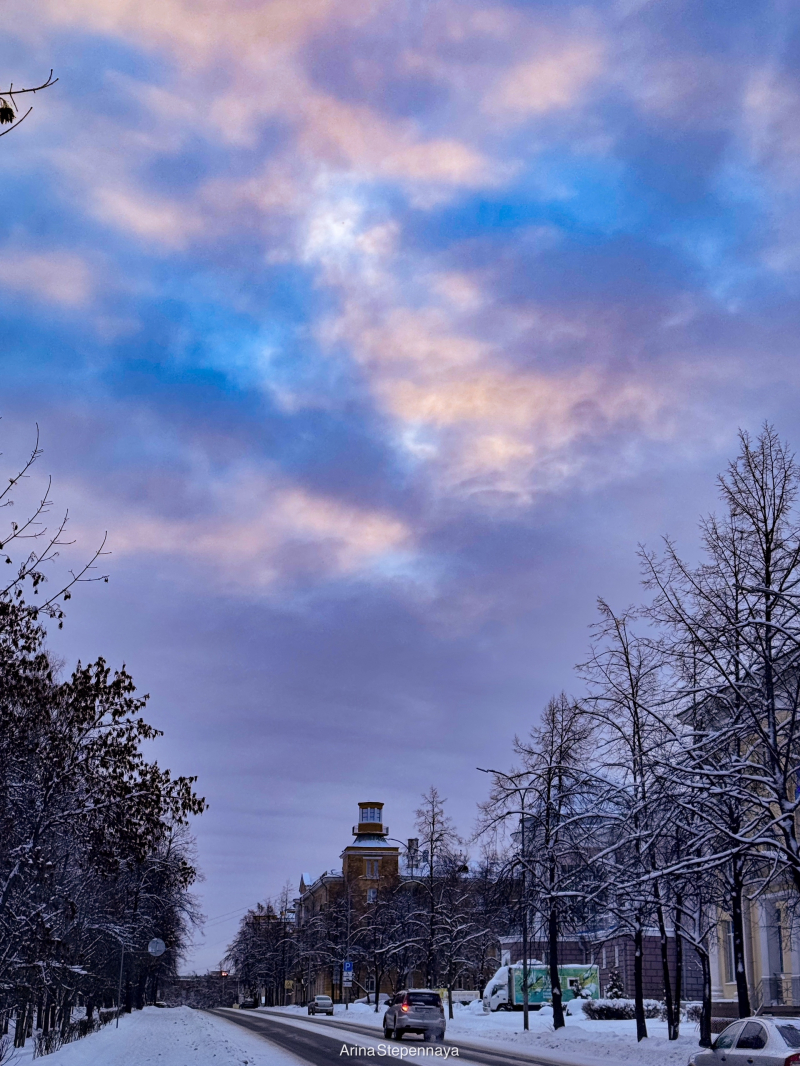 «Улицы опустели. С каждой минутой людей и машин всё меньше. Редкие прохожие спешат к праздничному столу. Тяжёлая снегоуборочная техника скребет заиндевелый асфальт. Мужикам за рулём этих динозавров не до рефлексии о самом себе и бытие вокруг. Они бы сейчас с радостью сидели за накрытым столом с любимыми людьми. А не смотрели на огни праздничного города через стекла своего объектива или трактора, — описал обстановку Илья Тимин. — Одинокий человек уже давно стоит на остановке. Курит. Наивный, но, возможно, он не автобус ждёт. А также, как и я, просто изучает мир, ищет что-то прекрасное в нём».