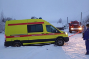 В Беломорском районе скорая помощь с больным застряла в сугробе, на помощь пришли спасатели.