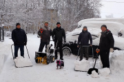 Сотрудники Госкомитета по обеспечению жизнедеятельности и безопасности населения вместе с четвероногим другом вышли бороться со снежной стихией.