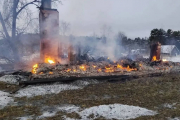 Огонь уничтожил нежилой 2-этажный дом в поселке Лендеры Муезерского района. Остались только трубы на пепелище.