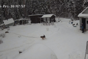Камера на дачном участке запечатлела, как жители Питкярантского округа отбивали собаку у волков.