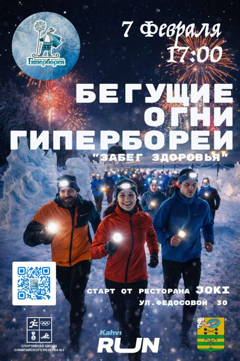 В 17:00 на Онежской набережной вблизи дома № 30 на улице Федосовой стартует спортивный забег «Бегущие огни Гипербореи».