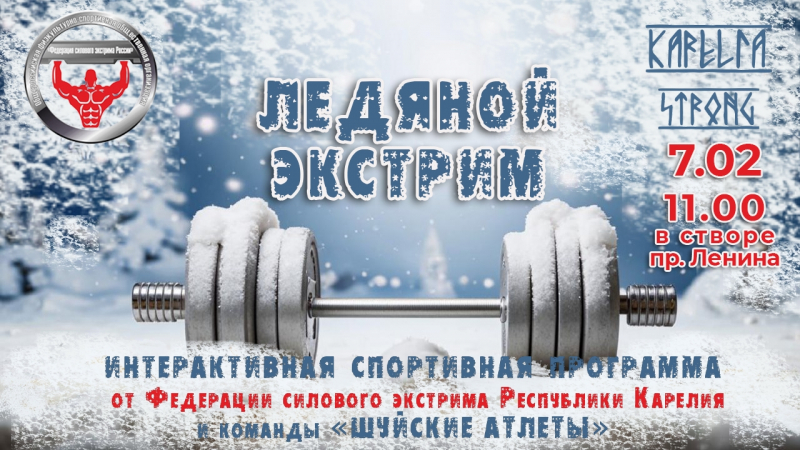 С 11:00 в створе проспекта Ленина пройдет традиционный ежегодный турнир по силовым видам спорта «Ледяной экстрим». Богатыри будут тягать бревна и ледяные сундуки.