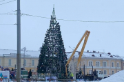 Рабочие начали убирать елку с площади Кирова утром 9 февраля.