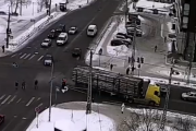Камера наблюдения зафиксировала дорожную аварию в карельской столице.