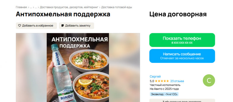 Объявление с услугой антипохмельной поддержки в Петрозаводске опубликовано на портале Авито.