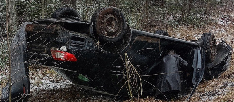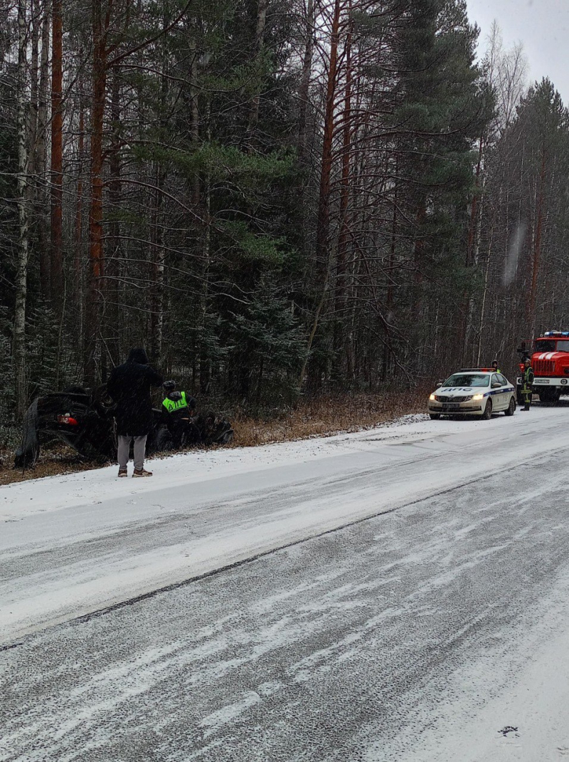 Автомобиль перевернулся на крышу на скользкой трассе в Прионежье