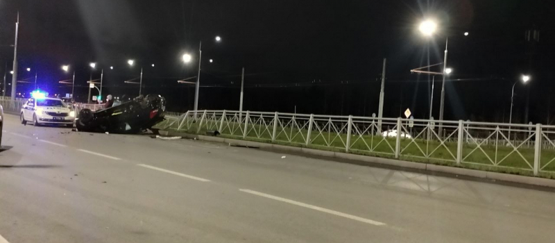 Автомобиль перевернулся на шоссе в Петрозаводске