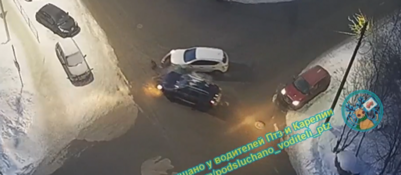 Момент дорожной аварии запечатлела камера наблюдения. Ролик размещен в паблике «Подслушано у водителей Птз и Карелии».