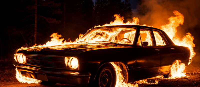 Горящий изнутри автомобиль обнаружили сотрудники МЧС ночью 7 сентября.
