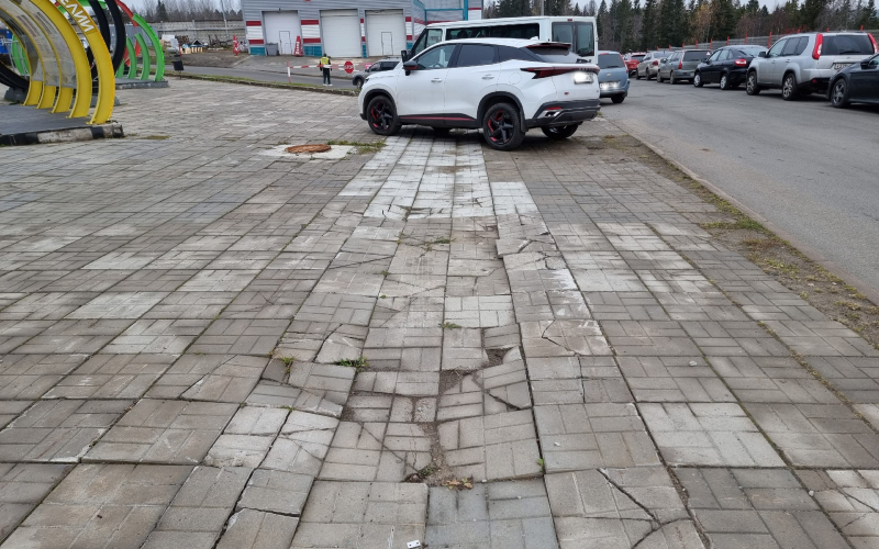 Автомобилисты разбили газоны у спортцентра Петрозаводска из-за закрытой парковки