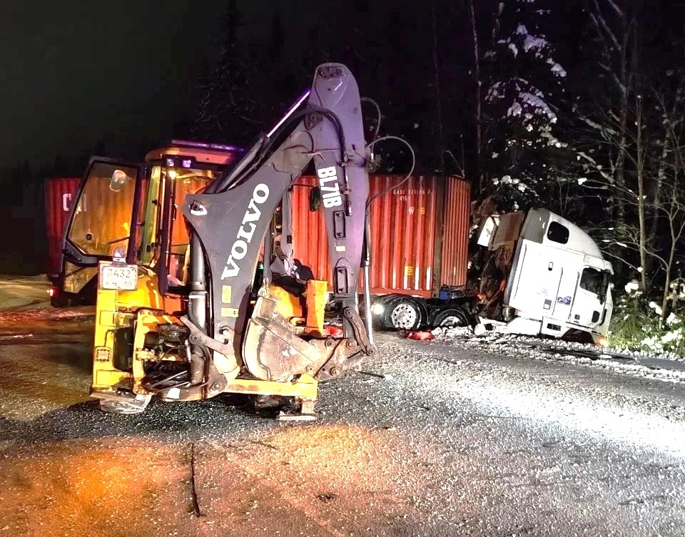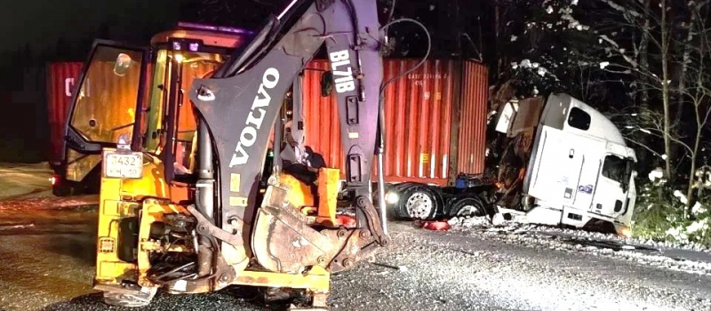 Человек пострадал после столкновения экскаватора с большегрузом на трассе в Карелии