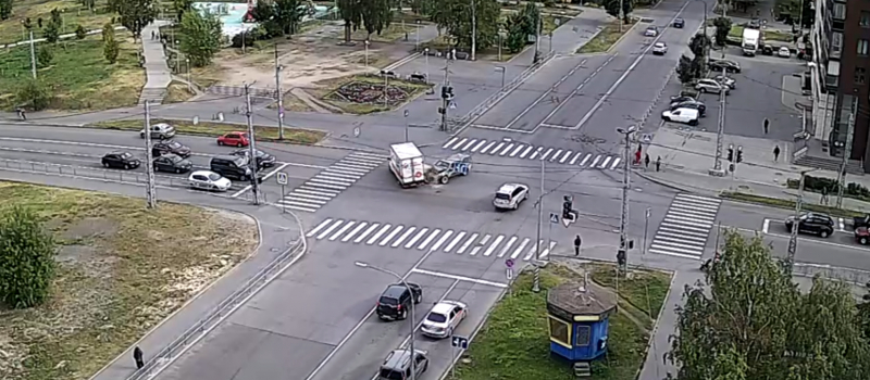 Момент ДТП попал в объектив камеры видеонаблюдения “Ситилинк”. На записи видно, как внедорожник на полном ходу протаранил в бок выехавший на перекресток грузовик.