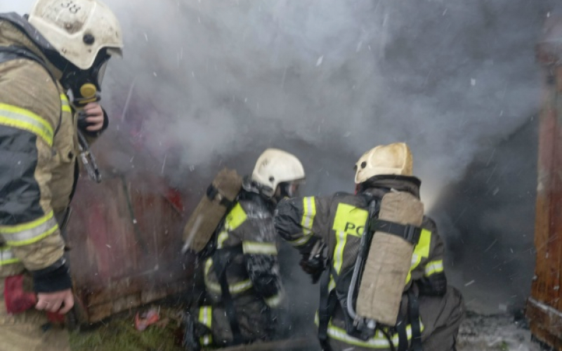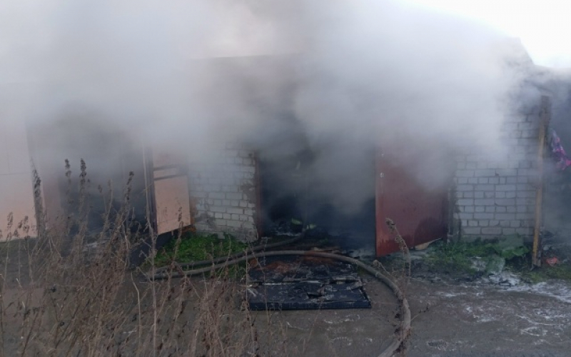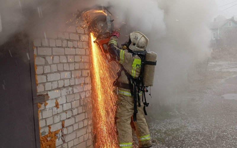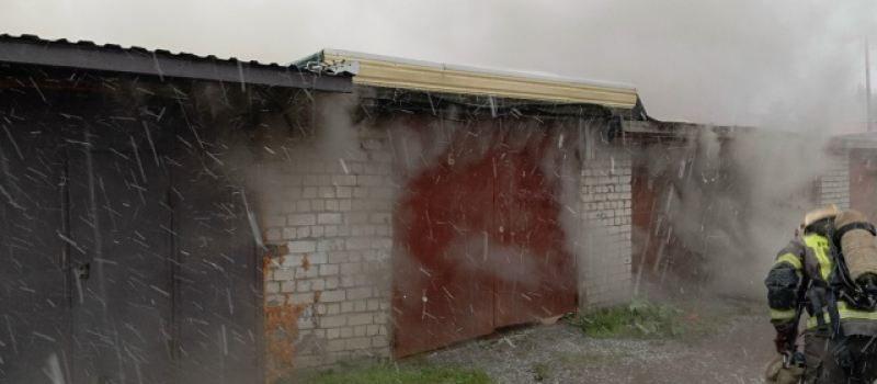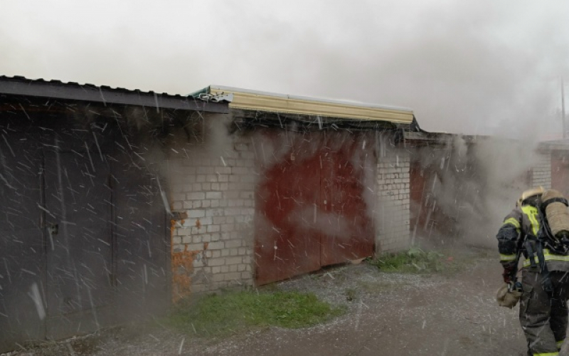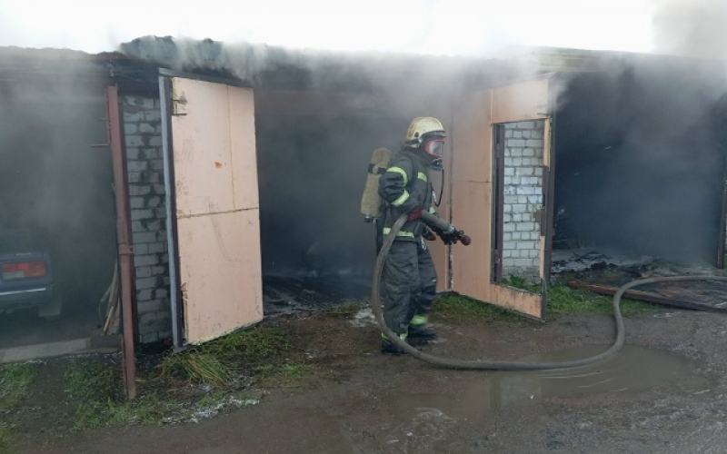 Прибывшие на место вызова пожарные увидели, что горит четыре гаража. Вскрыли ворота гаражей при помощи бензореза, в одном обнаружили автомобиль. Он полностью был поврежден огнем.