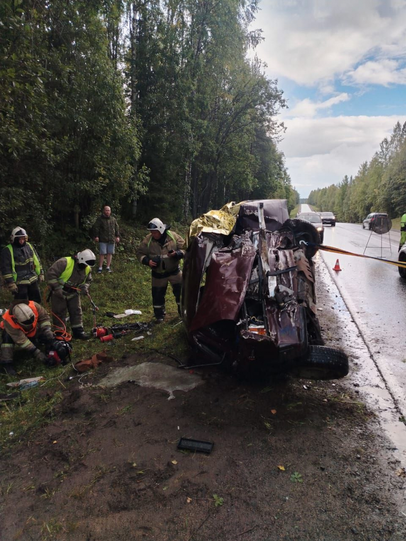 На место происшествия выехал дежурный караул пожарной части Беломорска. Прибывшие на место ДТП спасатели достали из искореженной «пятерки» четырех человек.