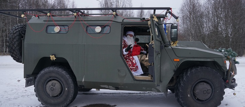 Дед Мороз приехал в школу Карелии на бронированном авто