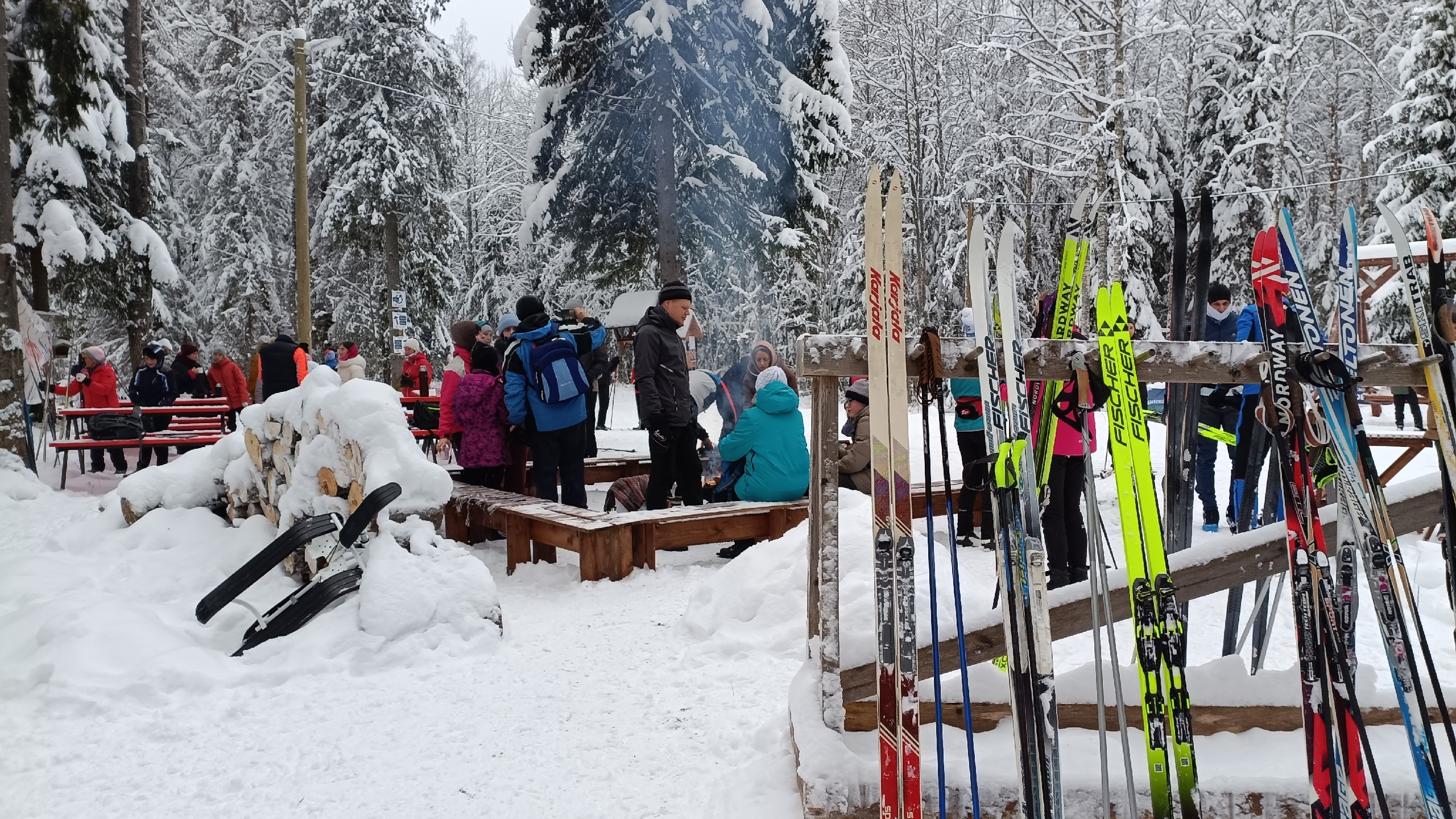 Напомним, что организаторы каждый день готовят трассу «Фонтаны» для лыжных и пеших прогулок. А если замерзнете, можно согреться у костра горячим чаем. Если устанете, то к вашим услугам — большие семейные качели для отдыха.