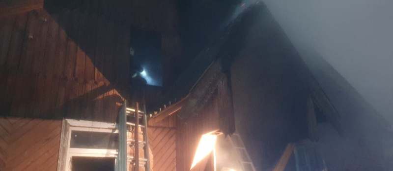 Деревянный дом полыхал около полуночи в Медвежьегорске