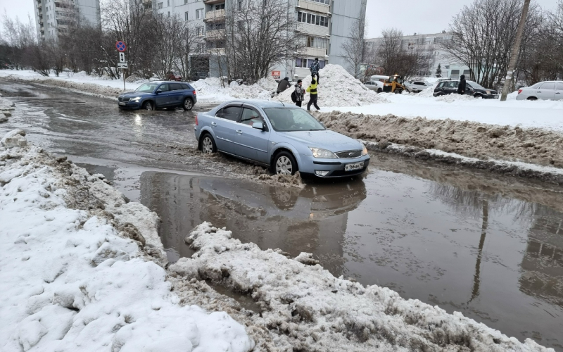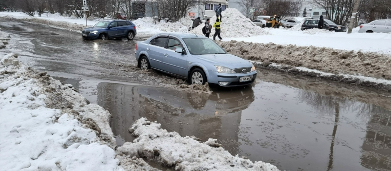 Наш фотокорреспондент Ирина Яковлева побывала на месте аварии и сообщила, что машины по улице не едут, а будто плывут.