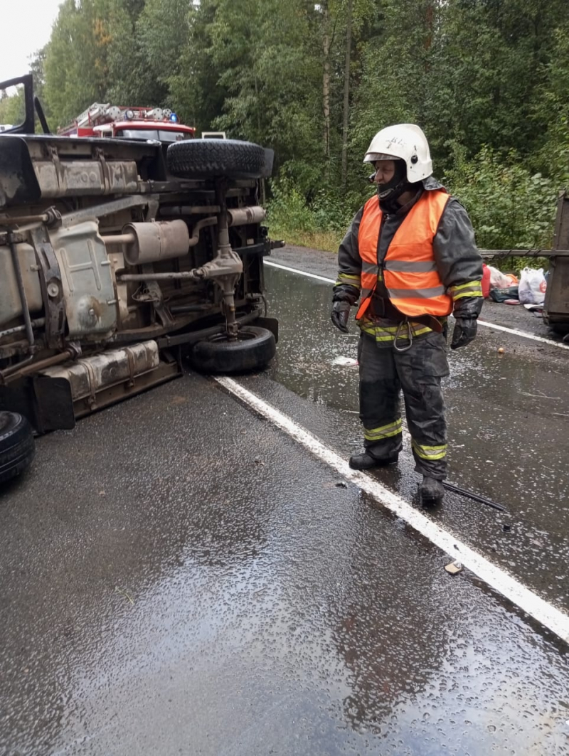 Как сообщили в отряде противопожарной службы по Суоярвскому округу, 26 августа в 12:18 на 120-121 километре трассы “Петрозаводск - Суоярви” перевернулся внедорожник УАЗ Hunter с прицепом.