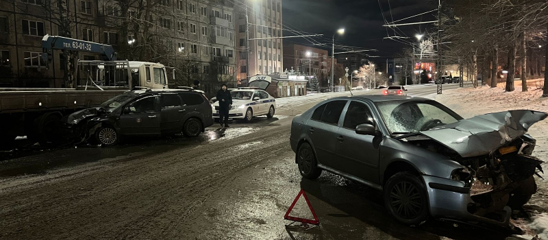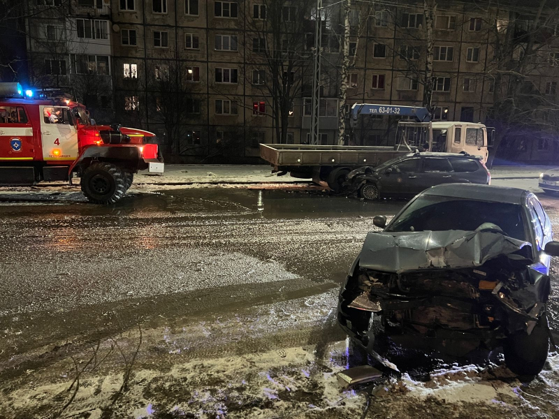 Авария с участием 3 автомобилей произошла ночью 22 ноября в Петрозаводске.