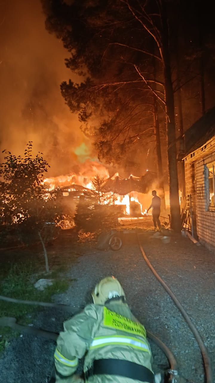 Прибыв на место в 21:15, пожарные обнаружили что открытое пламя пожирает две бани и хозяйственную постройку. Общая площадь пожара составила 60 кв. м. Тушили огонь 12 человек личного состава с помощью трех автоцистерн. Ликвидировать возгорание удалось в 02:23 ночи. Пострадавших нет.