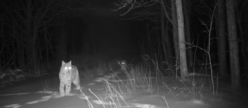 Семья рысей на вечерней охоте попала в объектив фотоловушки в Питкярантском районе.