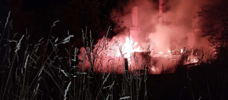 Двухэтажная заброшка всю ночь горела в поселке Карелии