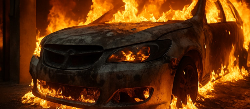Гараж сгорел вместе с автомобилем в Петрозаводске