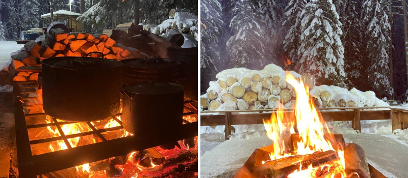 Если замерзнете, всегда можно согреться у костра горячим чаем. Если устанете, то к вашим услугам — большие семейные качели для отдыха.