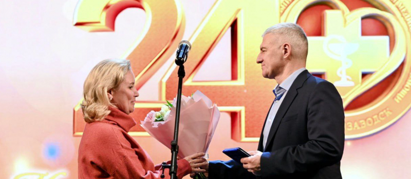 Губернатор лично поздравил медиков и наградил почетным знаком «За вклад в развитие Республики Карелия» Елену Филиппову – заведующую хирургическим отделением № 1, и Оксану Маньшину, старшего лаборанта клинико-диагностической лаборатории.