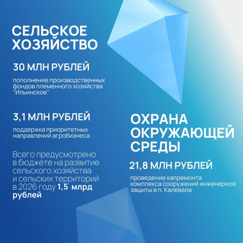 Глава Карелии Артур Парфенчиков в своем телеграм-канале сообщил, что 28 ноября внес в парламент региона поправки в проект закона о бюджете на 2026 год. Так, он предложил направить дополнительное финансирование — более 1,6 млрд рублей — на приоритетные направления: здравоохранение, образование и спорт, социальную поддержку, сельское хозяйство и транспорт.