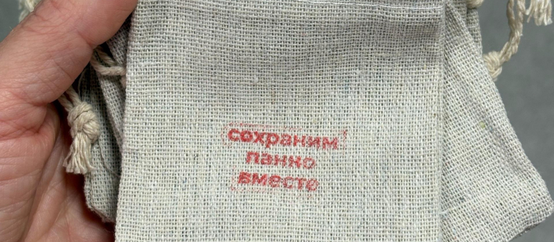 Инициативная группа горожан, работающая над сохранением мозаичного панно в Питкяранте, вместе с местными жителями сделали сувенирные мешочки.
