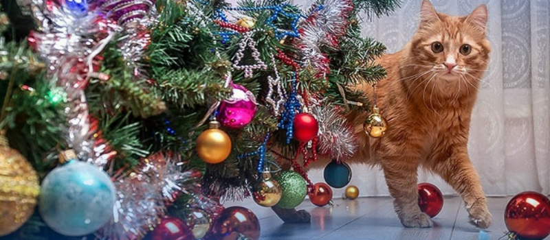 Не секрет, что питомцам вне зависимости от возраста могут быть интересна новогодняя елка, ведь она привлекает их не только яркими игрушками, но и новыми запахами, появившимися вдруг в доме. Животные могут опрокинуть новогоднюю ель, разбить елочные игрушки, пораниться или даже получить удар током при попытке грызть гирлянду. Специалисты объяснили, как защитить елку от кота, а кота — от елки. Советы опубликованы в паблике «Объясняем в Карелии».