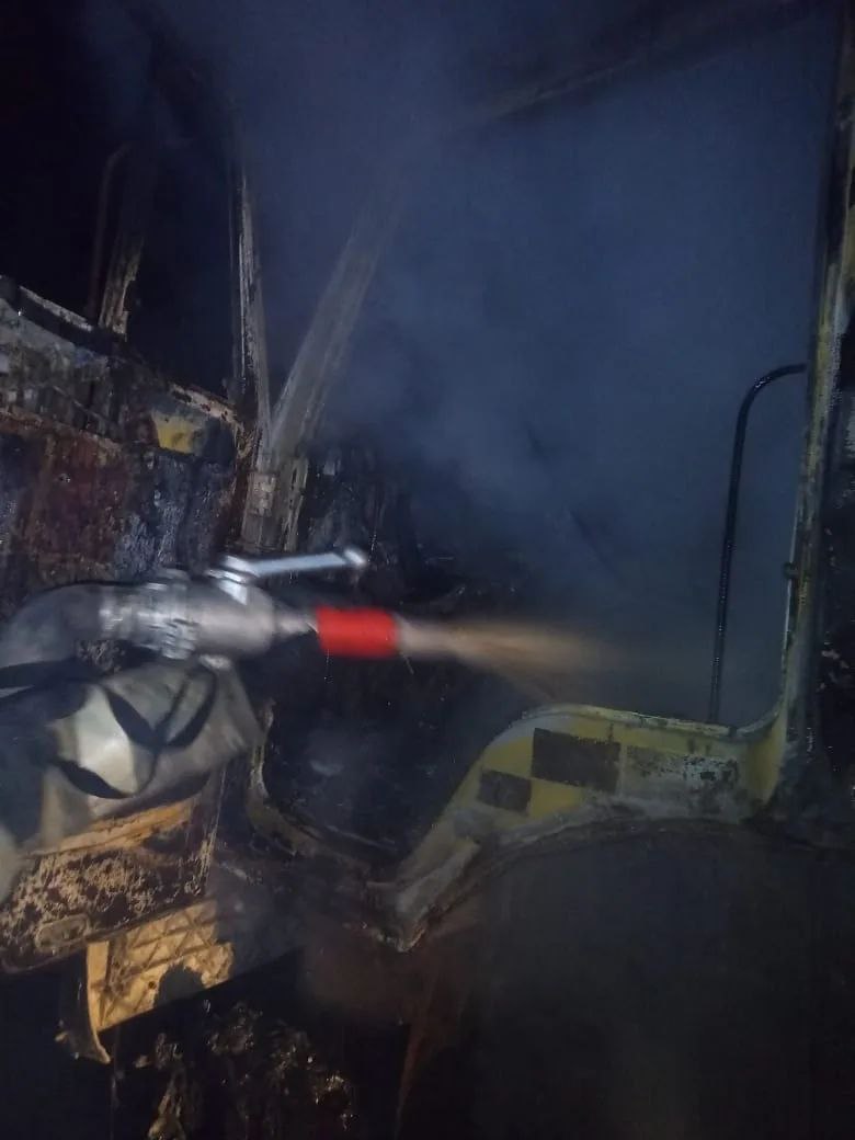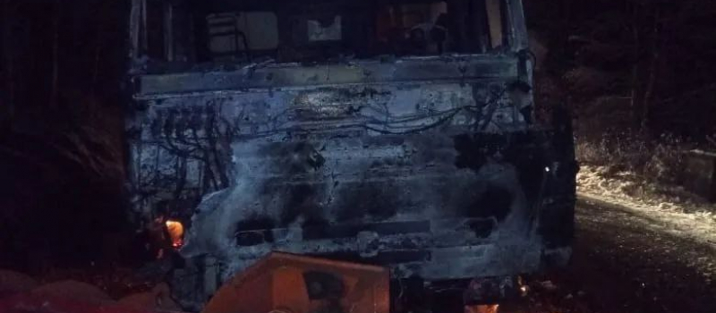 В результате пожара Камаз сгорел полностью.