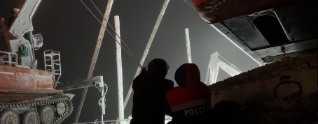 Конструкцию собрали на земле, закрепили тросами, подняли и смонтировали на месте.