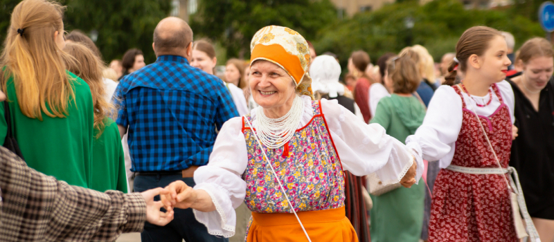 В фойе конференц-зала была организована выставка костюмов из Карелии и других регионов России: Башкортостан, Дагестан, Калмыкия, Мордовия, Северная Осетия — Алания, Татарстан, Чувашия и других.