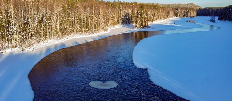 В преддверии 14 февраля инструкторы «Карьяла Парк» создали уникальный арт-объект — огромное сердце из чистейшего льда и отправили его в путешествие по бурной реке Шуя.