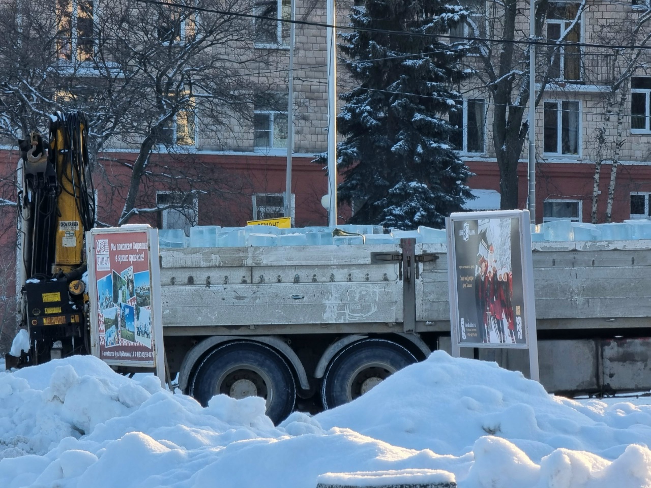 Ледяные кубы для будущих скульптур привезли на набережную Петрозаводска
