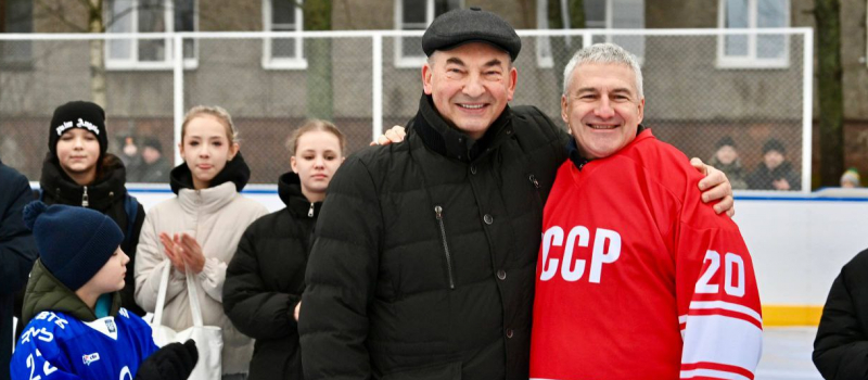 Артур Парфенчиков вместе с Владиславом Третьяком открыли хоккейную площадку в Питкяранте.